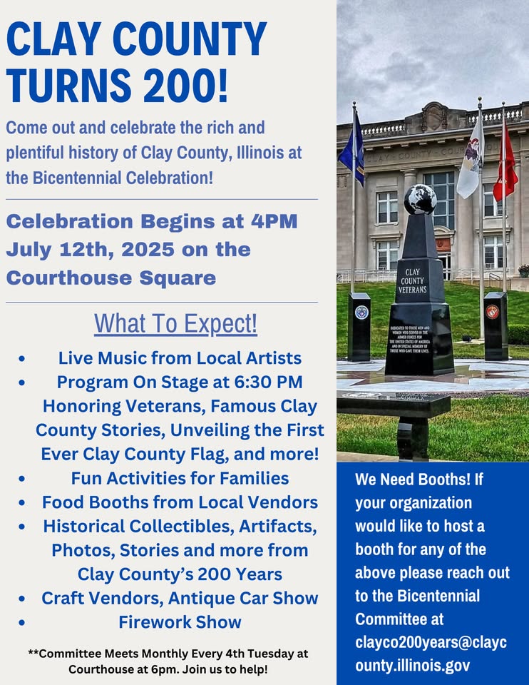 July 12 Clay County Bicentennial Celebration Court House Square 300 Broadway St, Louisville, IL, United States